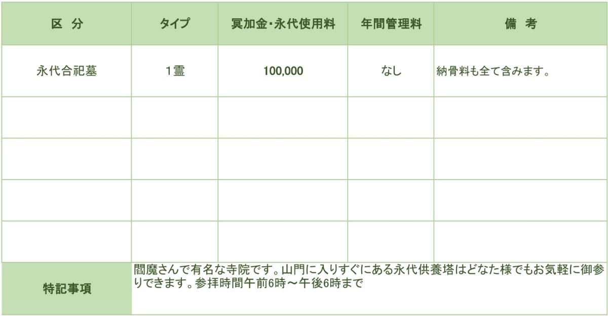 永代供養墓 長寳寺 永代供養塔 ちょうほうじ屋外合祀 長寳寺 永代供養塔大阪府大阪市平野区平野本町4-23 長寳寺(ちょうほうじ)は平安時代の武人坂上田村麻呂の娘で、桓武天皇の后であった坂上春子が開山と伝えています。密教寺院であるとともに、中世以降、念仏道場としても栄え、閻魔王の信仰の拠点となっています。尼僧慶心の蘇生㟽譯を記した『よみがえりの草紙』は中世の閻魔王に関する説話としてとても有名です。 毎年5月18日は閻魔さんの縁日として地域に親しまれています。又、摂津国三十三ヶ所霊場第三十一番霊場、 摂津国八十八ヶ所第三十八番霊場、尼寺三十六ヶ所霊場第二十九番霊場にもなっております。長寳寺の永代供養塔は本堂の前にあり、どなた様でもお参りしやすい永代供養塔となっております。 ※宗旨・宗派は問わず、どなた様でもご利用頂けます。 おすすめポイント・宗派を問わずご利用可能 ・駅が近くお参りしやすい所在地大阪府大阪市平野区平野本町4-23 アクセス・JR関西線 平野駅下車 徒歩5分 ・地下鉄谷町線 平野駅 12出口より5分 ※駐車場完備