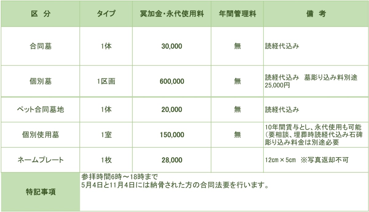 ・合同墓:3万円